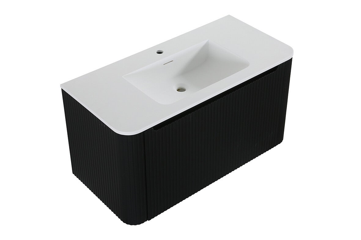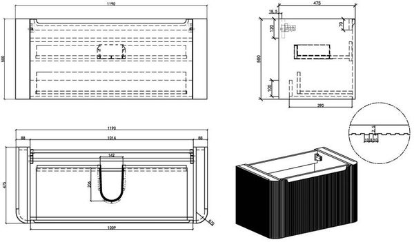 Wiesbaden "Sulora" onderkast afgeronde hoeken geribbeld met 1 lade 1 uitsparing 120 x 48 cm Mat-zwart
