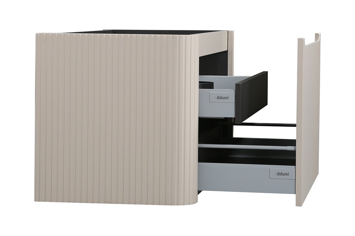 De Sulora onderkast is een stijlvolle blikvanger voor iedere moderne badkamer. Het elegante, verticale ribbeldesign in combinatie met de zachte afgeronde hoeken geeft deze onderkast een luxe en eigentijdse uitstraling. Deze onderkast is voorzien van één ruime lade. Extra handig is de uitschuifbare binnenlade met 1 uitsparing voor sifon of afvoer, zo creëer je extra opbergruimte voor kleinere badkameraccessoires zonder dat dit ten koste gaat van het strakke design. Het materiaal van de onderkast bestaat uit MDF met een PVC folie. Bovendien is de Sulora onderkast verkrijgbaar in meerdere kleuren en afmetingen, zodat je eenvoudig de perfecte match vindt voor jouw badkamerstijl en ruimte.