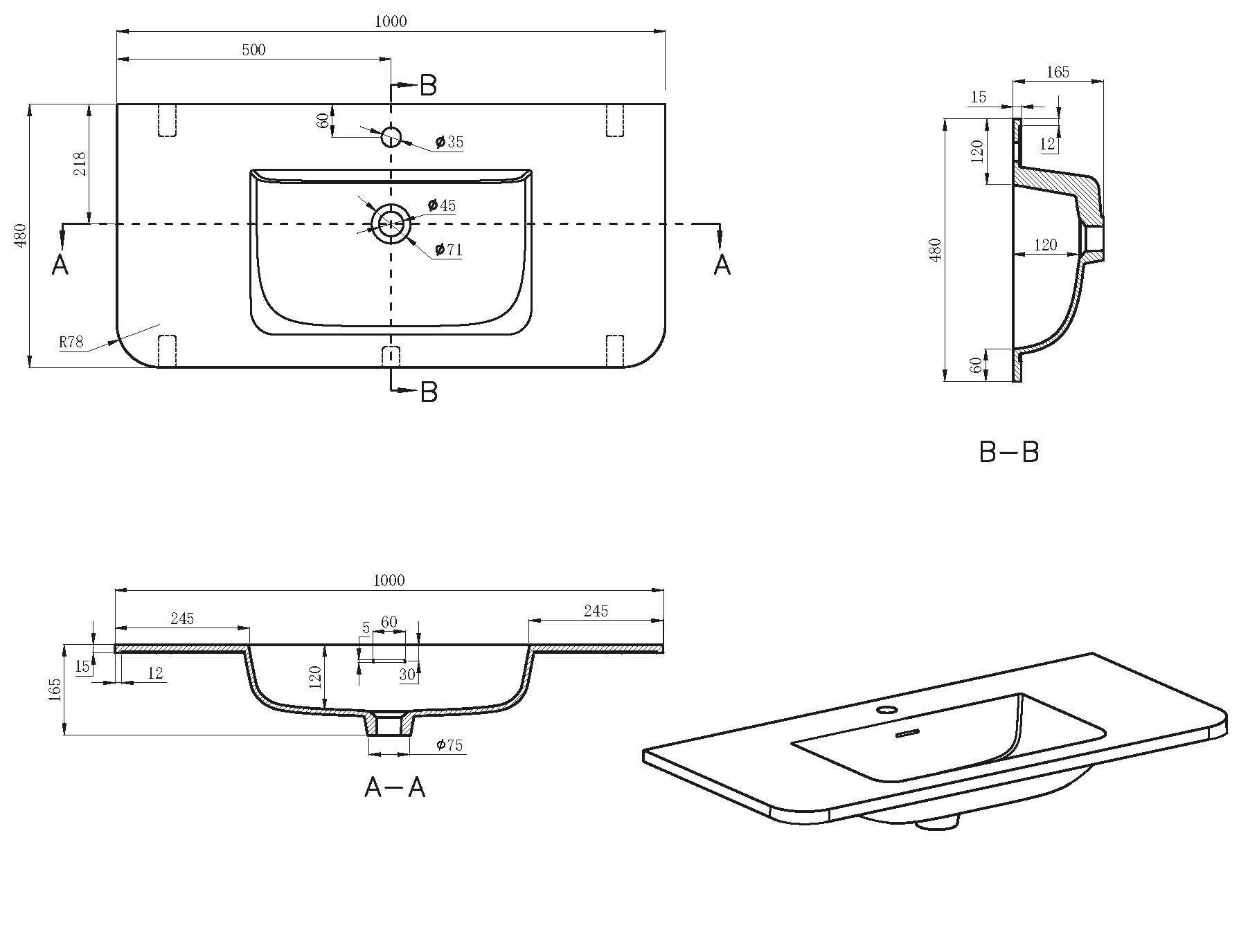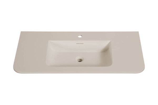 Wiesbaden "Laro wastafel enkel met 1 kraangat ronde hoeken 100 x 48 x 1,5 cm solid surface Beige