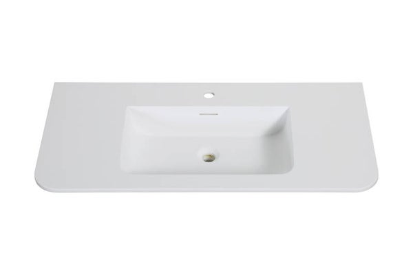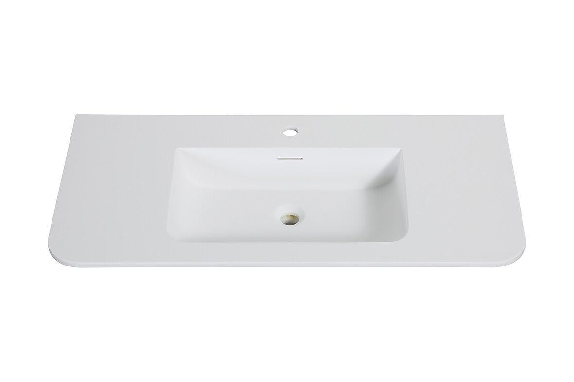 Wiesbaden "Laro wastafel enkel met 1 kraangat ronde hoeken 100 x 48 x 1,5 cm solid surface Mat-wit