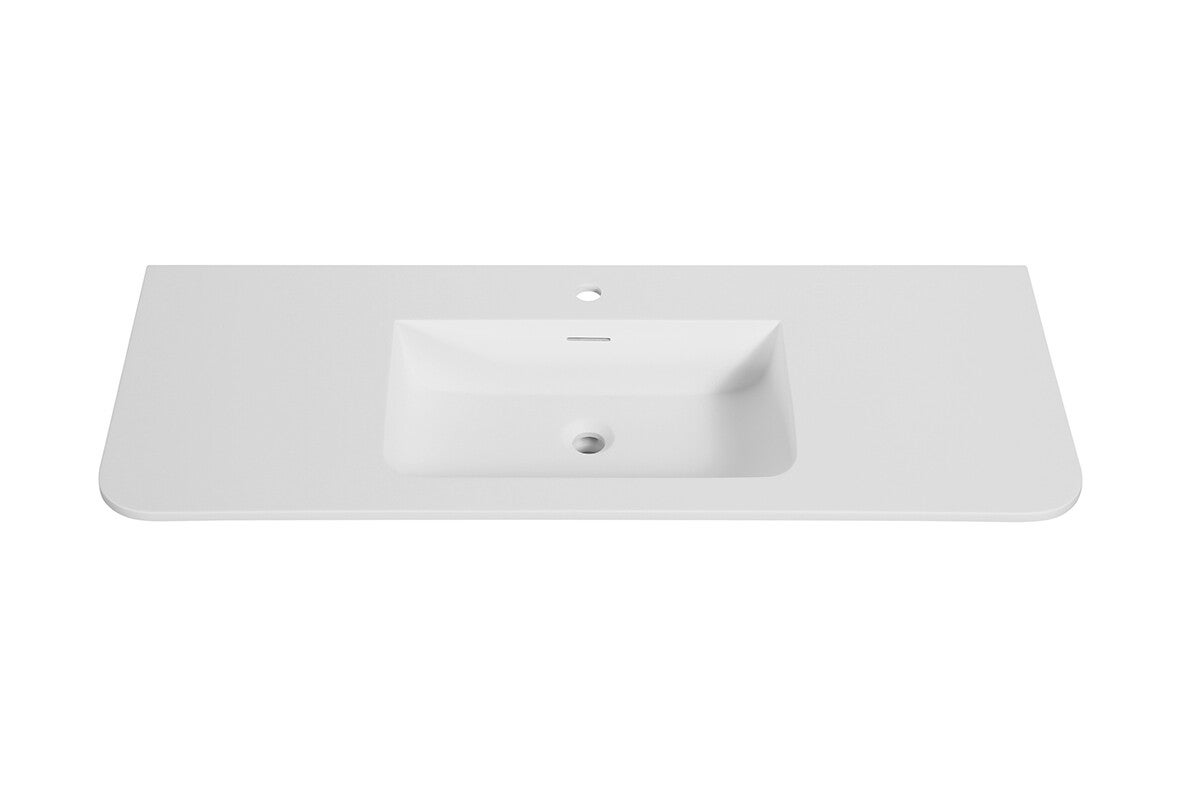 Wiesbaden "Laro wastafel enkel met 1 kraangat ronde hoeken 120 x 48 x 1,5 cm solid surface Mat-wit