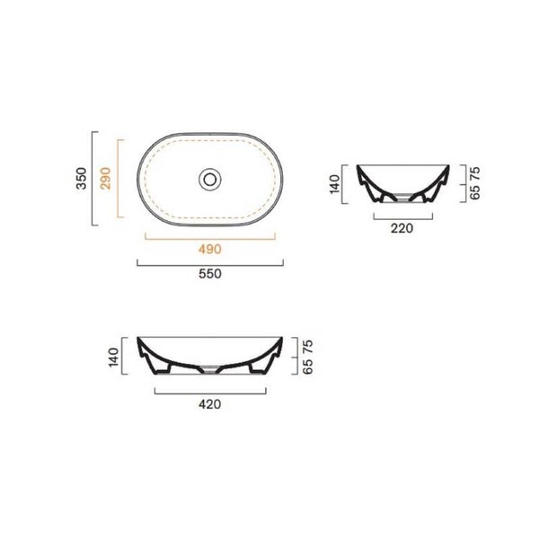 Catalano "Sfera-Tonalita" waskom 50x35x14 Glans-wit