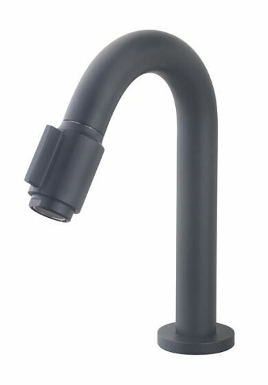Bij de Victoria toiletkraan van Wiesbaden Sanitair is het kraanmechaniek verwerkt in de uitloop (straalbreker). Dit geeft een zeer luxe uitstraling. U opent en sluit deze kraan door het einde van de uitloop naar rechts en links te draaien. Deze kraan is gemaakt van messing en heeft een mat zwarte kleur. In combinatie met andere mat zwarte elementen van Wiesbaden Sanitair creëert u een moderne eenheid in uw toiletruimte of badkamer.