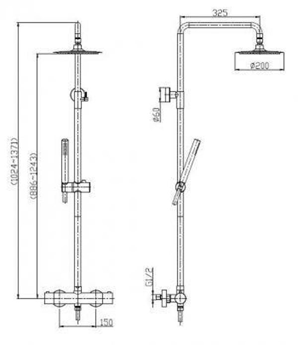 - een telescopische stijgbuis (waardoor de douchekop in hoogte te verstellen is);