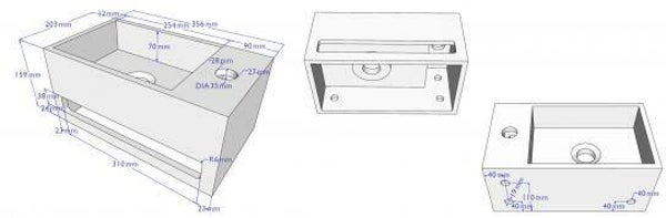 Wiesbaden "Julia-Rechts" fontein incl.handdoekhouder fontein Solid Surface 35 x 20 x 16 cm Betonlook