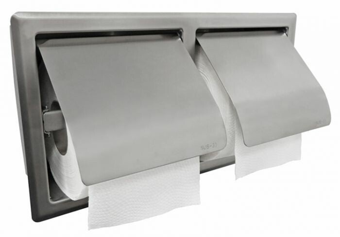 De Sunk dubbele inbouw toiletrolhouder met klep van Wiesbaden Sanitair heeft een erg lange levensduur, omdat hij gemaakt is van hoge kwaliteit RVS.