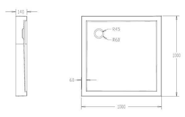 Best-Design "Project" opbouwdouchebak vierkant 90x90x14 cm