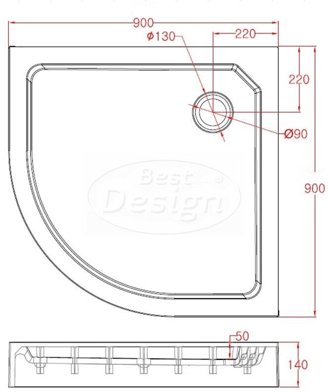 Best-Design "Project" opbouwdouchebak 1/4 rond 90x90x14 cm R=550