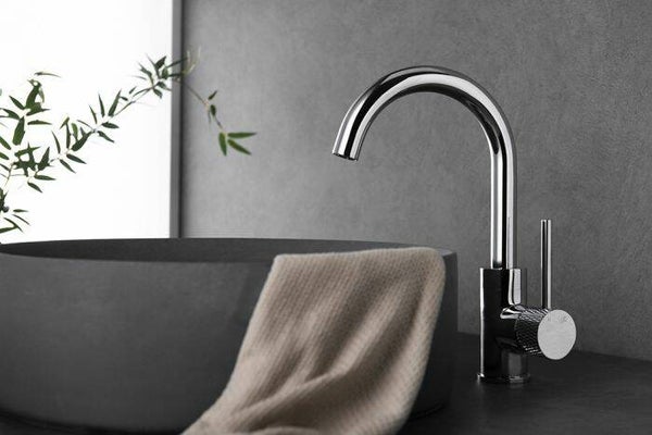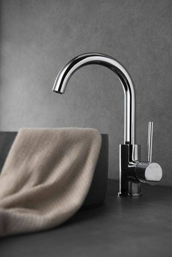 De Ribbd serie bestaat uit vier prachtige kranen en bijbehorende producten die elk in vier kleuren te verkrijgen zijn. Wat deze kranen serie bijzonder maakt is het geribbelde motief. Een klein detail dat toch een groot effect heeft op de look van je badkamer! Deze wastafelmengkraan komt in de kleur chroom en heeft een draaibare uitloop. Een kraan met draaibare uitloop zorgt ervoor dat je een stuk naar rechts en links draaien. Hierdoor ben je flexibeler in het gebruik van de kraan. De kraan is voorzien van een PVD-coating, dit is een toplaag die beschermt tegen corrosie en krassen.