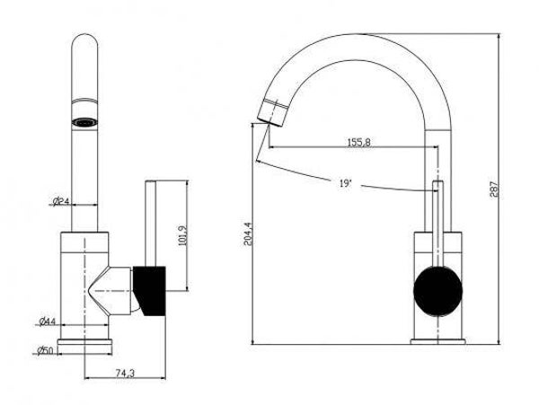 Uitvoering:Wastafelkraan met draaibare uitloop