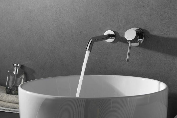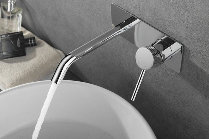 De Ribbd serie bestaat uit vier prachtige kranen en bijbehorende producten die elk in vier kleuren te verkrijgen zijn. Wat deze kranen serie bijzonder maakt is het geribbelde motief. Een klein detail dat toch een groot effect heeft op de look van je badkamer! De inbouw-wastafelmengkraan eenhendel komt in de kleur chroom en heeft een uniek en stijlvol design. De kraan bevestig je aan de muur waardoor je hem kunt combineren met je favoriete waskom. Met de eenhendel bediening regel je eenvoudig zowel de temperatuur als de waterstraal van de kraan. Je kunt ervoor kiezen om de inbouwkraan te monteren mét of zónder de meegeleverde muurplaat zoals te zien is op de foto's. De kraan is voorzien van een PVD-coating, dit is een toplaag die beschermt tegen corrosie en krassen.
