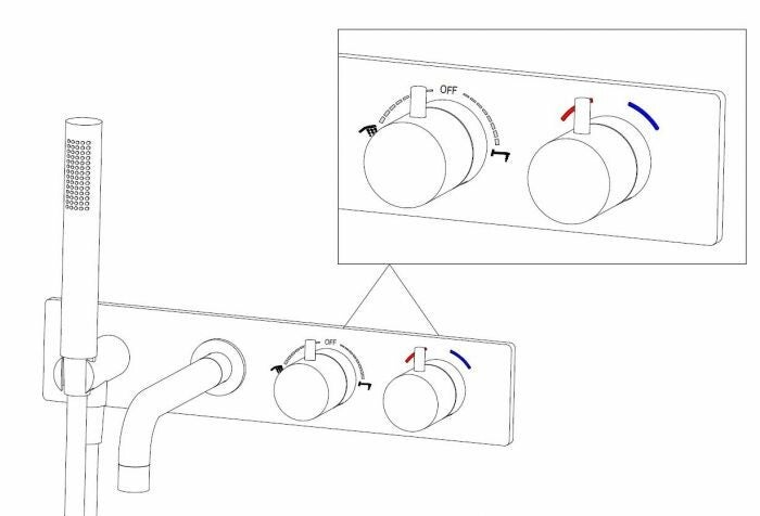 - 1 omstelknop; keuze uit baduitloop of handdouche;