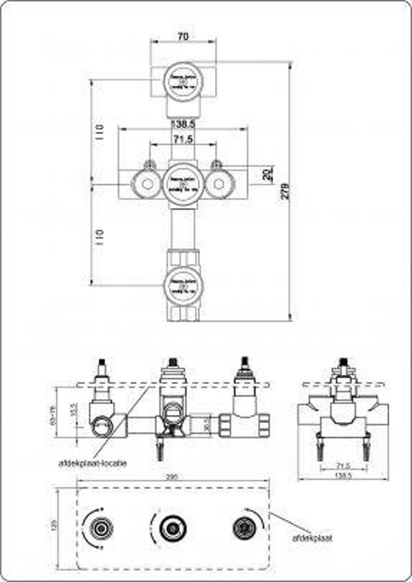 De Bit inbouwdeel thermostaatkraan 3-weg is geschikt voor de Caral, Cross en Rombo afbouwsets met drie grepen. Deze kun je apart bij bestellen.