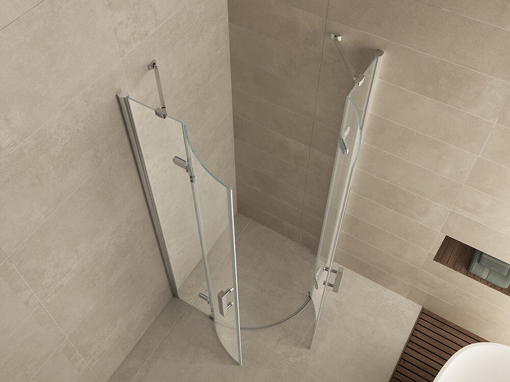 De Double douchecabine van Wiesbaden Sanitair is met zijn ronde vorm, net als de Bold douchecabine, een stijlvol object in de badkamer. De cabine is zowel op de vloer als op een douchebak te plaatsen. De dubbele deuren zorgen voor een grote instap. Deze ronde douchecabine wordt geleverd inclusief twee 45 graden stabilisatiestangen en twee muurprofielen.