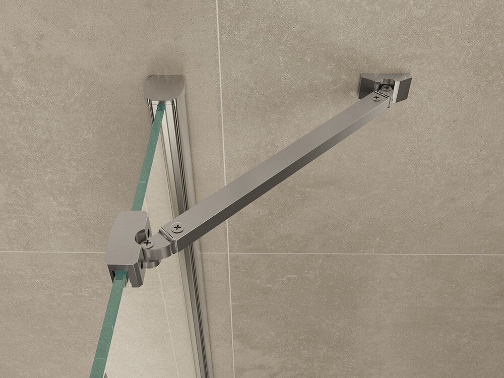 De scharnieren van de Double douchecabine hebben een liftende werking zodat ook met afschot in de vloer de deuren gewoon geopend kunnen worden. Daarnaast zorgt de liftfunctie ervoor dat de afwateringsprofielen onderaan de deuren minder over de grond schuren en daardoor minder snel slijten.
