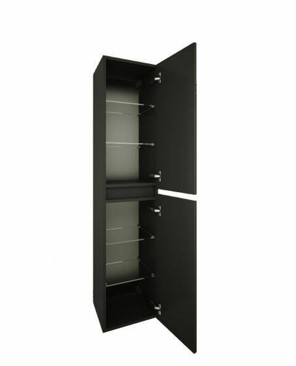 Deze losse Marmaris kolomkast mat zwart van Wiesbaden Sanitair is ideaal voor badkamers die (extra) opbergruimte kunnen gebruiken. Door het slanke design neemt deze kast weinig ruimte in. Hierdoor past hij vaak ook in een kleinere badkamer. De kast heeft twee deuren en in totaal zes vakken. De deuren zijn greeploos, waardoor de kast een strakke uitstraling heeft.