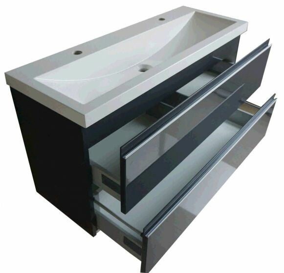 Deze hoogglans grijze Shall onderkast van Wiesbaden Sanitair is dé oplossing voor de kleinere badkamer. Door de diepte van slechts 36 cm (normaal is dit 46 cm) houd je meer ruimte over. Deze onderkast is uitgerust met twee lades die voorzien zijn van een Soft-Close systeem. Dit zorgt ervoor dat de lades altijd rustig sluiten.