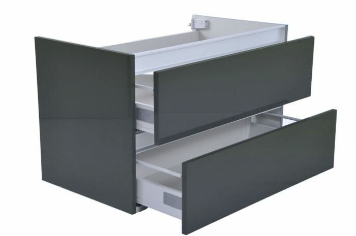 Deze hoogglans grijze onderkast van Wiesbaden Sanitair is een lust voor het oog. Door de greeploze lades heeft hij een strak en tijdloos design. De twee lades zijn voorzien van een Soft-Close systeem. Dit zorgt ervoor dat de lades altijd rustig sluiten.