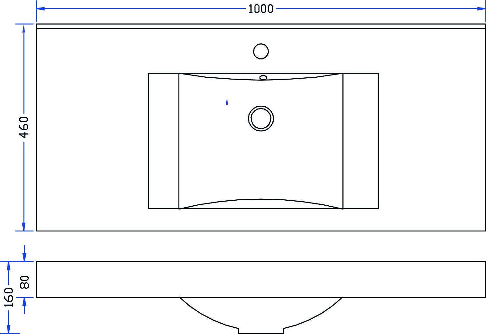 Wiesbaden "tigris" wastafel enkel met 1 kraangat 100x46x8 cm kunstmarmer