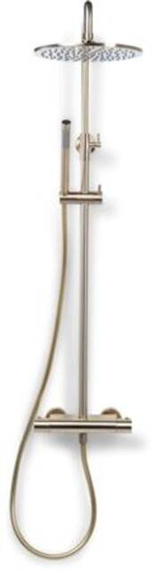 De Schiphorst-Sanitair Brondby regendouche is een thermostatische set met een geborsteld goude kleur.