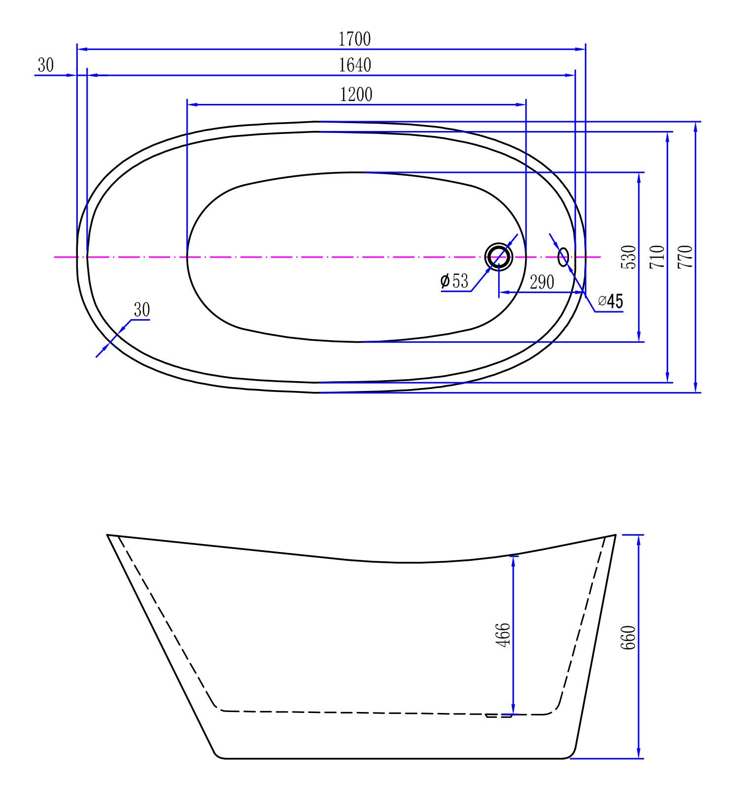 en ligbad in de badkamer is een genot. Een vrijstaand bad is pure luxe. Met genoeg ruimte wordt een vrijstaand bad een echt statement in de badkamer. Maar ook in een wat kleinere badkamer kan een vrijstaand bad erg mooi staan. Dit bad weegt 38 kg en bevat een overloop met een diameter van 45 mm. Het afvoergat heeft een diameter van 53 mm. Het bad wordt geleverd inclusief een waste in chroom kleur en een potenset.