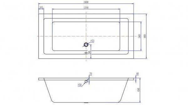 Dit Santino ligbad van Wiesbaden heeft een rechthoekige vorm met hoekige randen. De binnenkant heeft ook een rechthoekige vorm. Daarnaast heeft dit bad een overloop met een diameter van 50 mm. Het afvoergat heeft een diameter van 53 mm.