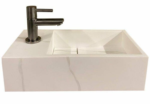Wiesbaden "Noble" fontein links solid surface 36 x 18 x 10 cm marmer wit
