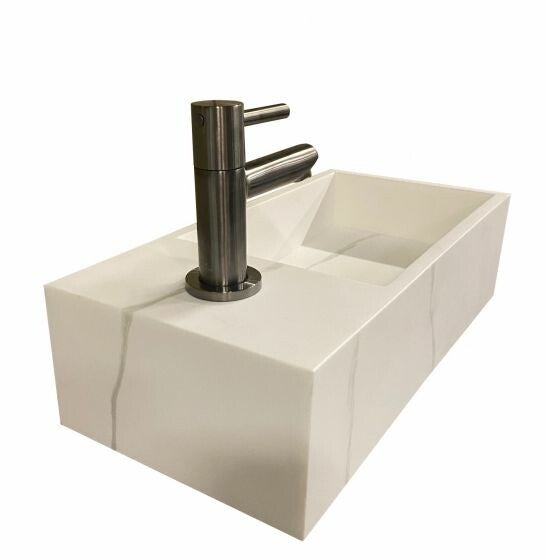 Wiesbaden "Noble" fontein links solid surface 36 x 18 x 10 cm Marmer-wit