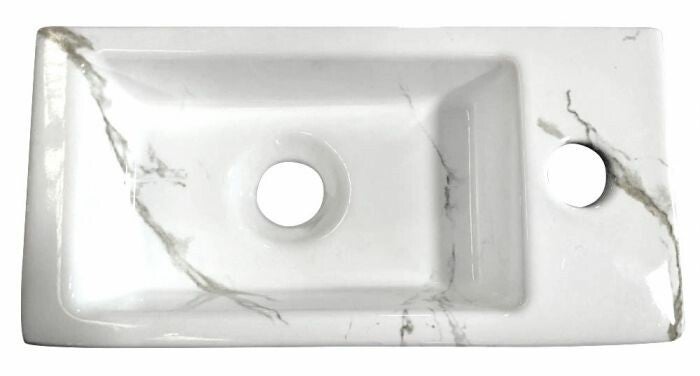 De mini-Rhea fontein met marmer effect van Wiesbaden Sanitair is super compact en neemt weinig ruimte in beslag. De binnenkant van deze fontein heeft een rechthoekige vorm met afgeronde hoeken. Deze fontein is gemakkelijk schoon te houden en door zijn afmeting is hij in bijna iedere toiletruimte te plaatsen.