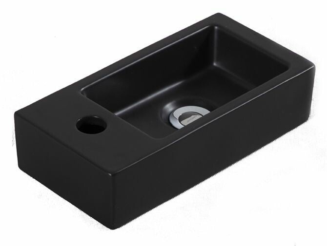 Deze keramische Rhea XS fontein van Wiesbaden Sanitair is super compact en neemt weinig ruimte in beslag. Deze fontein is gemakkelijk schoon te houden en door zijn afmeting is hij in bijna iedere toiletruimte te plaatsen. Dit fonteintje heeft een mat zwarte kleur. Dat maakt het een echte eyecatcher. In combinatie met andere mat zwarte elementen van Wiesbaden Sanitair creëer je een moderne eenheid in de toiletruimte of badkamer.