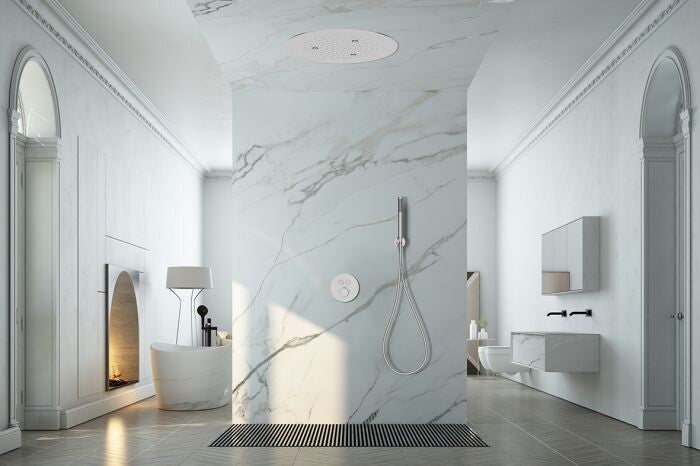 Niets is zo fijn als een heerlijk volle douchestraal. De Caral UFO inbouw hoofddouche plafond van Wiesbaden Sanitair biedt door zijn buitengewoon grote formaat, een ultieme regendouche ervaring. Deze hoofddouche bedekt je van schouder tot schouder met water. Alle sproeigaatjes zijn met elkaar verbonden door middel van een mat. Hierdoor kunnen de sproeigaatjes niet loslaten en kun je de douchekop eenvoudig schoonmaken.