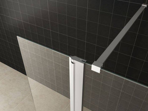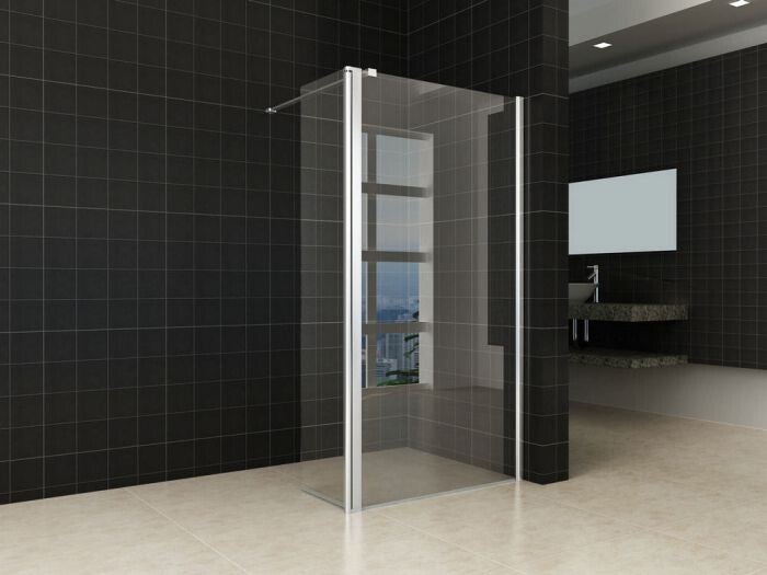 Deze Comfort hoekwand met scharnierprofiel van 30 cm breed is gemaakt van 10 mm dik gehard veiligheidsglas en met NANO-coating afgewerkt.