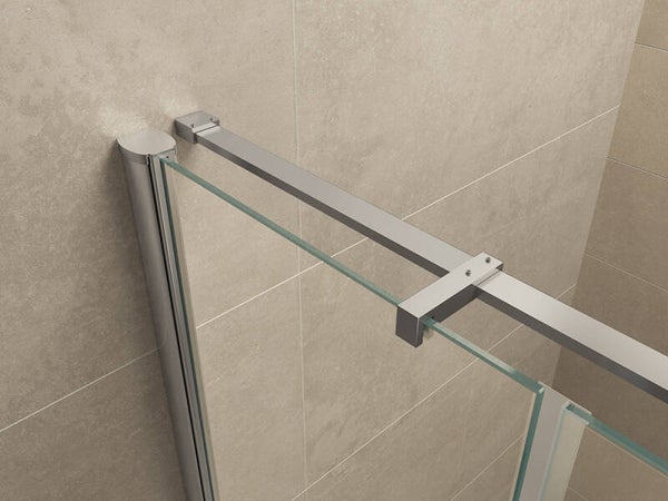 De Vaz nisdeur is ook uitermate geschikt om in combinatie met een Comfort inloopdouche een cabine samen te stellen. De meegeleverde stabilisatiestang is te gebruiken voor in de nis, maar natuurlijk ook om hem te stabiliseren in combinatie met een Comfort inloopdouche. Hiervoor heb je onze Comfort haakse glaskoppeling nodig.