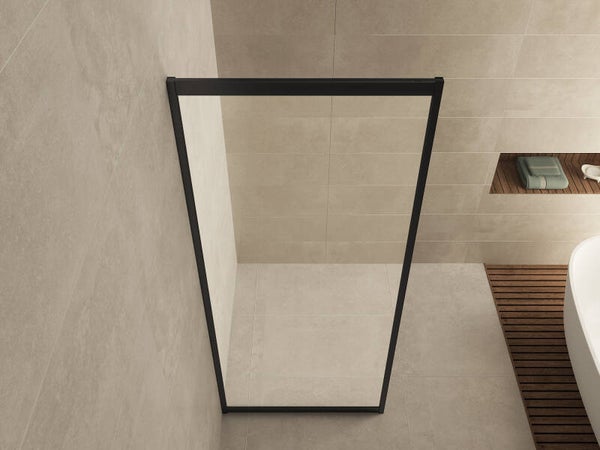 Wiesbaden "Skyline" zijwand 900x2000 8mm NANO Mat-zwart Tbv skyline schuifbare nisdeur