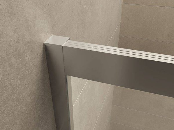 Heb je een grote nismaat waarin je gaat douchen? Dan is de Softclose 2.0 schuifdeur een mooie oplossing om de nis af te sluiten. De Softclose 2.0 schuifdeur van Wiesbaden Sanitair bestaat uit een vaste wand met daaraan vast een schuivende deur. Een ruimtebesparende oplossing ten opzichte van draaiende deuren en vaak geschikt om een grotere nismaat mee af te sluiten. Deze 2.0 schuifdeur heeft een vernieuwd en verbeterd softclose systeem en is het laatste stuk zelfremmend en zelfsluitend. Hierdoor remt de deur zelf af wanneer je hem openschuift. Een functie die erg luxe, maar ook veilig is. Je kunt de deur namelijk nooit te hard open of dicht schuiven. Ideaal voor als je jonge kinderen hebt.