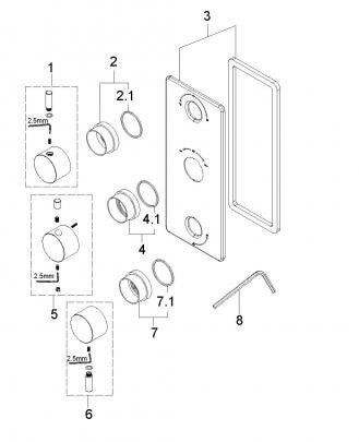 - omstelknoppen (bijvoorbeeld handdouche/hoofddouche en aan/uit);