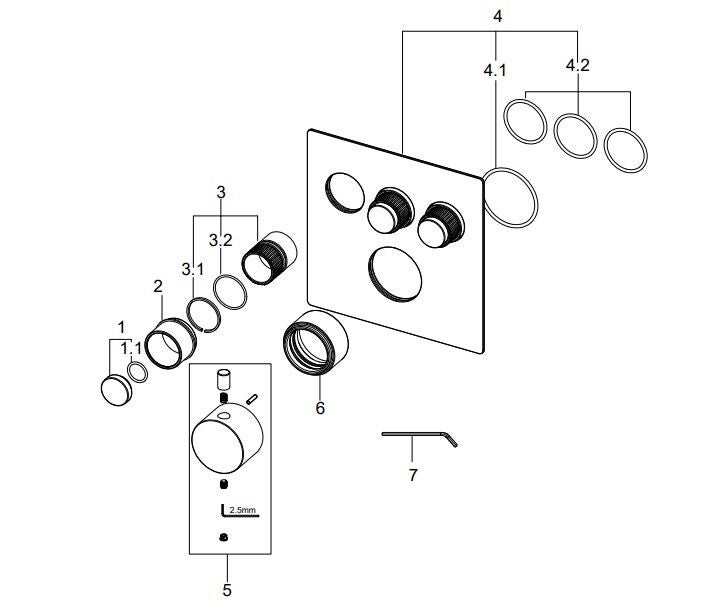 Voor dit Caral Klik Pro 3-weg afbouwdeel heb je de Caral Klik Pro 3-weg inbouw douchethermostaat nodig (artikelnummer 29.3411). Deze dient apart besteld te worden.