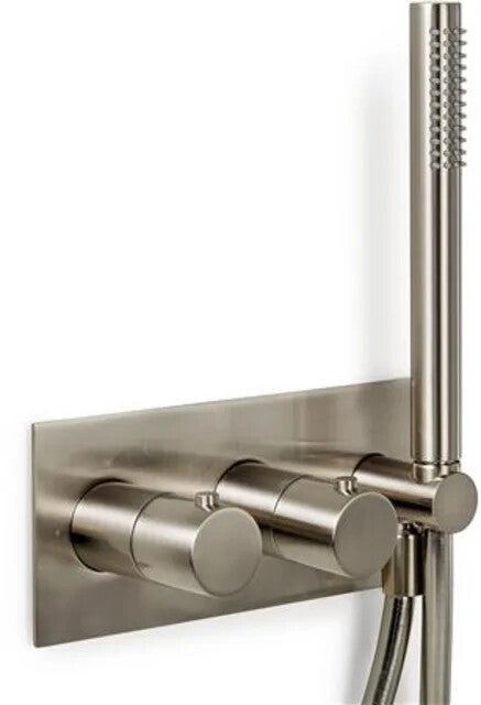 De Schiphorst-Sanitair "Brondby" inbouw douchethermostaat met doucheslang en handdouche, incl. inbouwdeel Geborsteld nikkel, is een mooie inbouw combinatie.