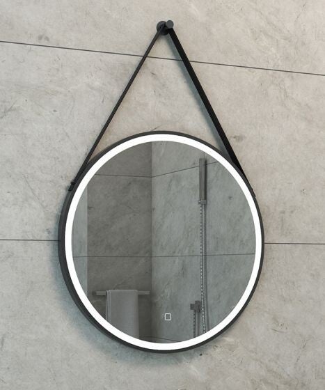 Wiesbaden "Cinto" spiegel rond met band, LED verlichting, dimbaar en spiegelverwarming 80 cm Mat-zwart