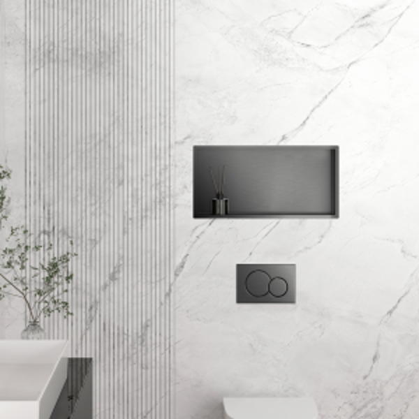 De Lotus inbouwnis in gunmetal is een prachtige toevoeging aan je badkamer. Met zijn rechthoekige vorm en moderne industriële stijl voegt deze inbouwnis een vleugje elegantie en functionaliteit toe aan je muur. Met een breedte van 61 cm, een diepte van 7 cm en een hoogte van 30.5 cm biedt deze nis voldoende ruimte voor het opbergen van je badkamerbenodigdheden. Dankzij het inbouwontwerp kan de Lotus inbouwnis naadloos worden geïntegreerd in de muur, waardoor een strak en georganiseerd uiterlijk ontstaat. Het is geschikt voor installatie op elke muur in je badkamer. Met de Lotus inbouwnis in gunmetal haal je niet alleen een functioneel opbergitem in huis, maar ook een elegant en stijlvol element dat je badkamerinterieur naar een hoger niveau tilt.