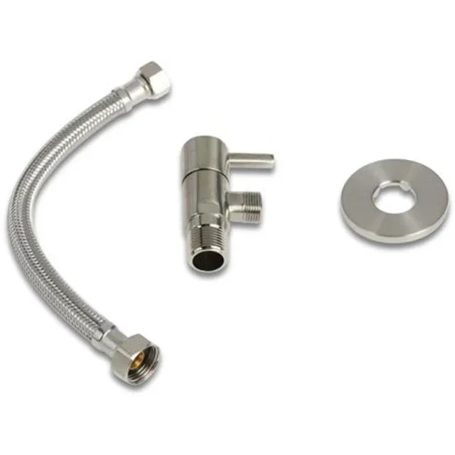 Schiphorst-Sanitair "Blue-Brondby" hoekstopkraan 1/2"x3/8" compleet met 25cm aansluitslang 1/2"x3/8" Geborsteld nikkel