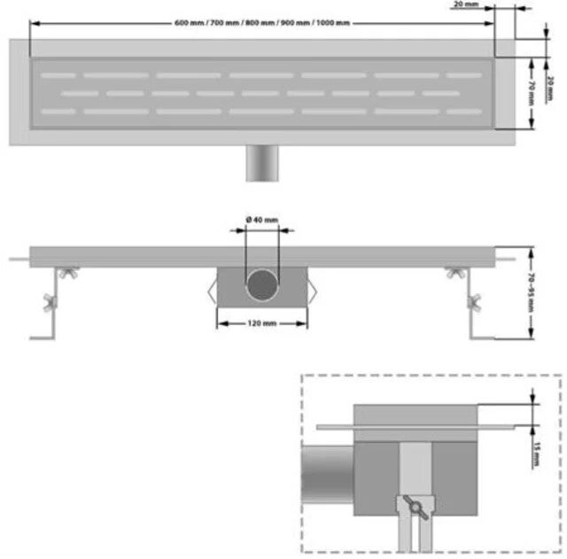 Schiphorst-Sanitair Slimline RVS douchegoot 700mm met flens, De douchegoot is geheel gemaakt van RVS-304 met een geborsteld rvs afwerking. Ook het rooster is ook van RVS-304. Het voordeel van de Slimline douchegoot is dat de sifon uitneembaar is.