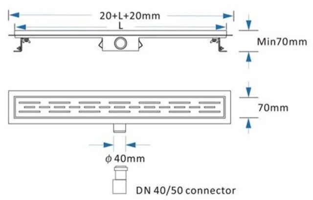 Schiphorst-Sanitair Slimline RVS douchegoot 800mm met flens, De douchegoot is geheel gemaakt van RVS-304 met een geborsteld rvs afwerking. Ook het rooster is ook van RVS-304. Het voordeel van de Slimline douchegoot is dat de sifon uitneembaar is.