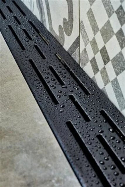 De douchegoot is geheel gemaakt van RVS-304 met een zwarte afwerking. Ook het rooster is ook van RVS-304.