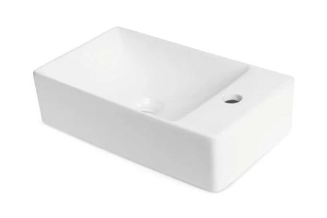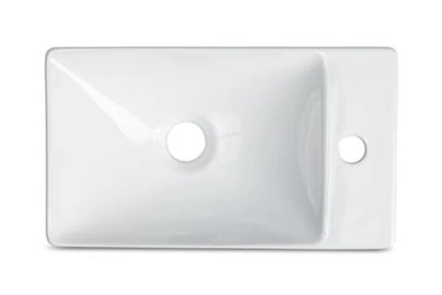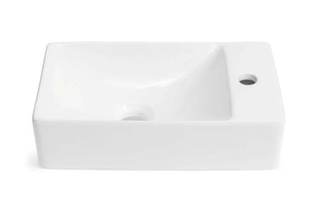 Het kraangat zit aan de rechterkant. Houdt met plaatsen rekening met aan welke zijde u de fontein wilt monteren. Er zorg voor een bijpassende afvoer en afvoerplug. Muurbevestiging wordt wel meegeleverd.
