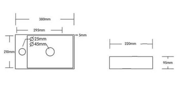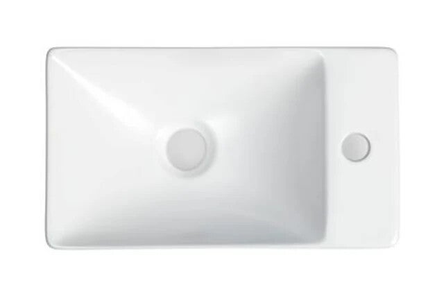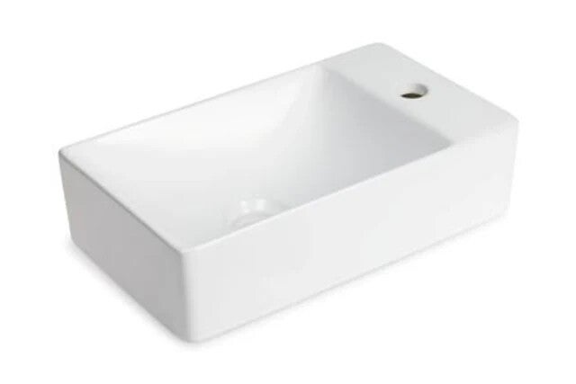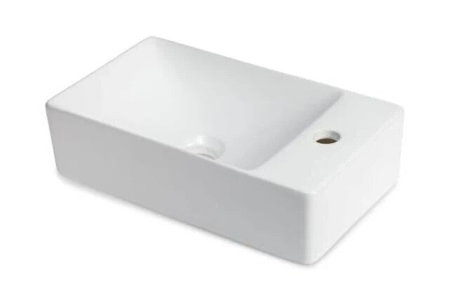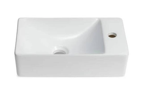 Het kraangat zit aan de rechterkant. Houdt met plaatsen rekening met aan welke zijde u de fontein wilt monteren. Er zorg voor een bijpassende afvoer en afvoerplug. Muurbevestiging wordt wel meegeleverd.
