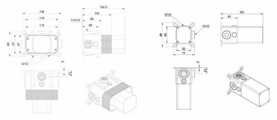 Dit inbouwdeel voor de Wiesbaden Dreams thermostatische douchekraan wordt geleverd inclusief 2 stopkranen.