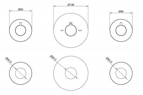 Het bevat 1 grote, ronde rozet, Ø9,6 cm voor de thermostatische douchemengkraan en 2 kleine rozetten, Ø 8 cm voor de stopkranen.