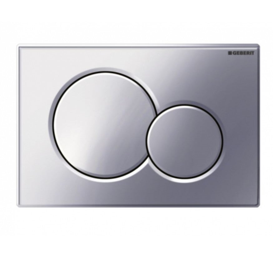 Geberit drukplaat in het mat-chroom uitgevoerd met 2 ronde knoppen.