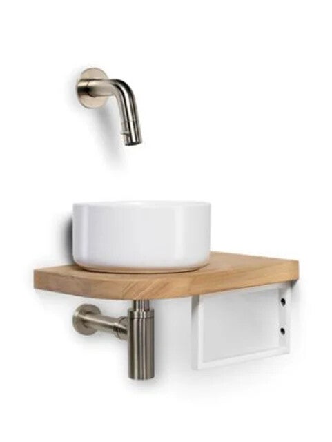 Schiphorst-Sanitair "One-Shelf" fonteincombinatie "Blue-Skov" Glans-wit/Geborsteld nikkel